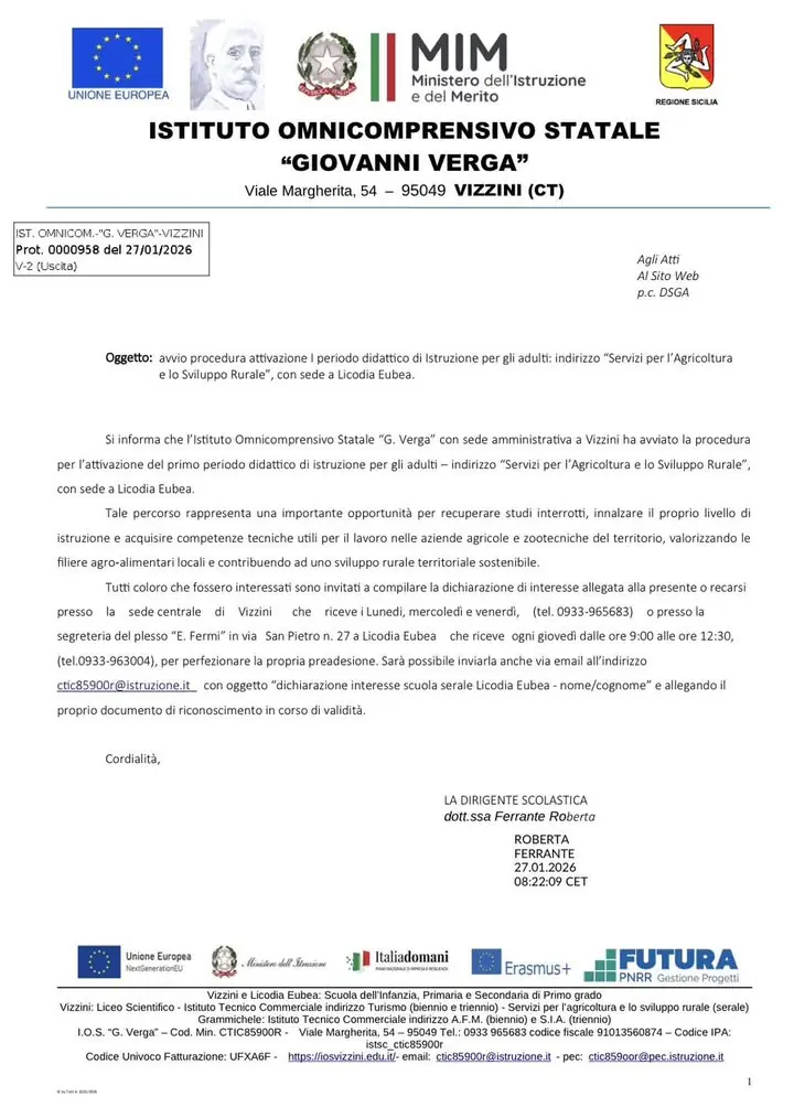 📢 𝐀𝐯𝐯𝐢𝐨 𝐩𝐫𝐨𝐜𝐞𝐝𝐮𝐫𝐚 𝐚𝐭𝐭𝐢𝐯𝐚𝐳𝐢𝐨𝐧𝐞 𝐈 𝐩𝐞𝐫𝐢𝐨𝐝𝐨 𝐝𝐢𝐝𝐚𝐭𝐭𝐢𝐜𝐨 𝐝𝐢 𝐈𝐬𝐭𝐫𝐮𝐳𝐢𝐨𝐧𝐞 𝐩𝐞𝐫 𝐠𝐥𝐢 𝐚𝐝𝐮𝐥𝐭𝐢: 𝐢𝐧𝐝𝐢𝐫𝐢𝐳𝐳𝐨 "𝐒𝐞𝐫𝐯𝐢𝐳𝐢 𝐩𝐞𝐫 𝐥'𝐀𝐠𝐫𝐢𝐜𝐨𝐥𝐭𝐮𝐫𝐚 𝐞 𝐥𝐨 𝐒𝐯𝐢𝐥𝐮𝐩𝐩𝐨 𝐑𝐮𝐫𝐚𝐥𝐞", 𝐜𝐨𝐧 𝐬𝐞𝐝𝐞 𝐚 𝐋𝐢𝐜𝐨𝐝𝐢𝐚 𝐄𝐮𝐛𝐞𝐚 Il Comune di Licodia Eubea informa che è in fase di attivazione il corso di Istruzione per Adulti – indirizzo “Servizi per l’Agricoltur